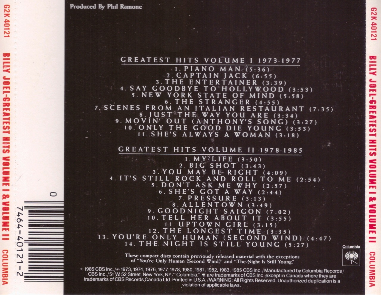 15+ Billy Joel Greatest Hits Volume I & Volume Ii Pics. The first set, consisting of two discs, titled volume i and volume ii, was. This music collection of greatest hits volume i & volume ii by billy joel features a multiple number of fascinating vintage pop and classic rock songs that span multiple stages of his music career: